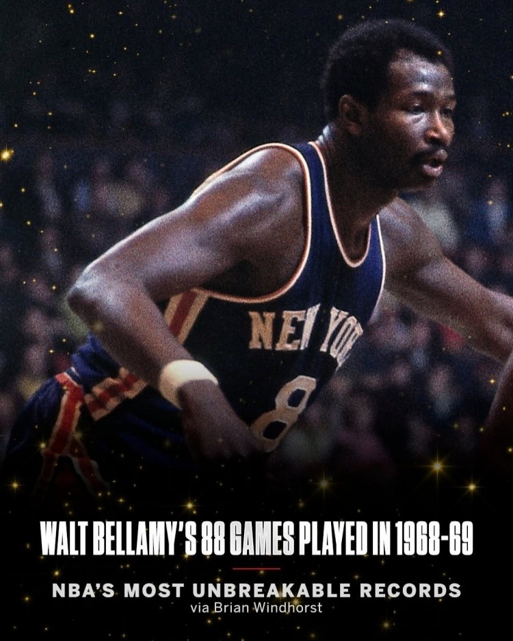 1968-69賽季,沃爾特-貝拉米起初效力于尼克斯,打了35場比賽。隨后他被交易到活塞,由于賽程安排的特殊性,他在活塞又打了53場比賽,使他的賽季總出場數(shù)達到了88場。NBA歷史上共有42次球員單賽季出場數(shù)超過82場,最近一次是上賽季的希爾德,效力步行者和76人共計84場比賽。歷史上僅次于貝拉米的是湯姆-亨德森,后者在1976-77賽季為子彈隊和老鷹共打了87場比賽。