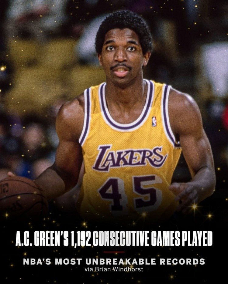 AC-格林從1986年到2001年連續(xù)16個賽季保持全勤,期間效力于四支不同的球隊。他打破了蘭迪-史密斯從1972年到1982年保持的906場連續(xù)出場紀(jì)錄。現(xiàn)年28歲的尼克斯球員米卡爾-布里奇斯職業(yè)生涯至今從未缺席過比賽,過去七年連續(xù)出場539場。如果他想追上AC-格林的紀(jì)錄,還需要在未來近八個完整賽季中保持全勤。