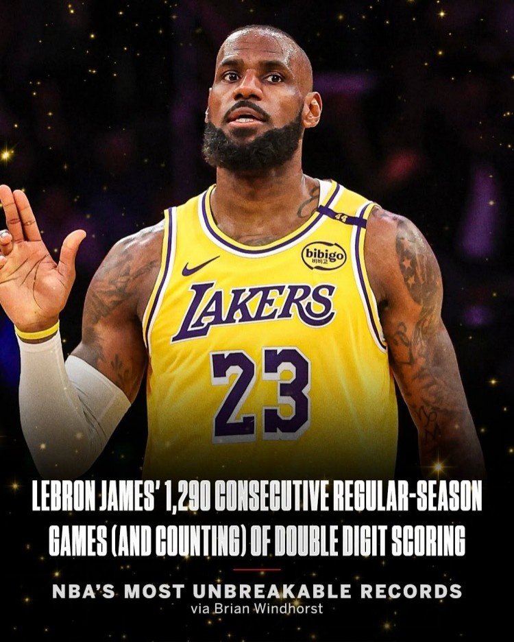 勒布朗-詹姆斯的1290場連續(xù)得分上雙(仍在延續(xù))