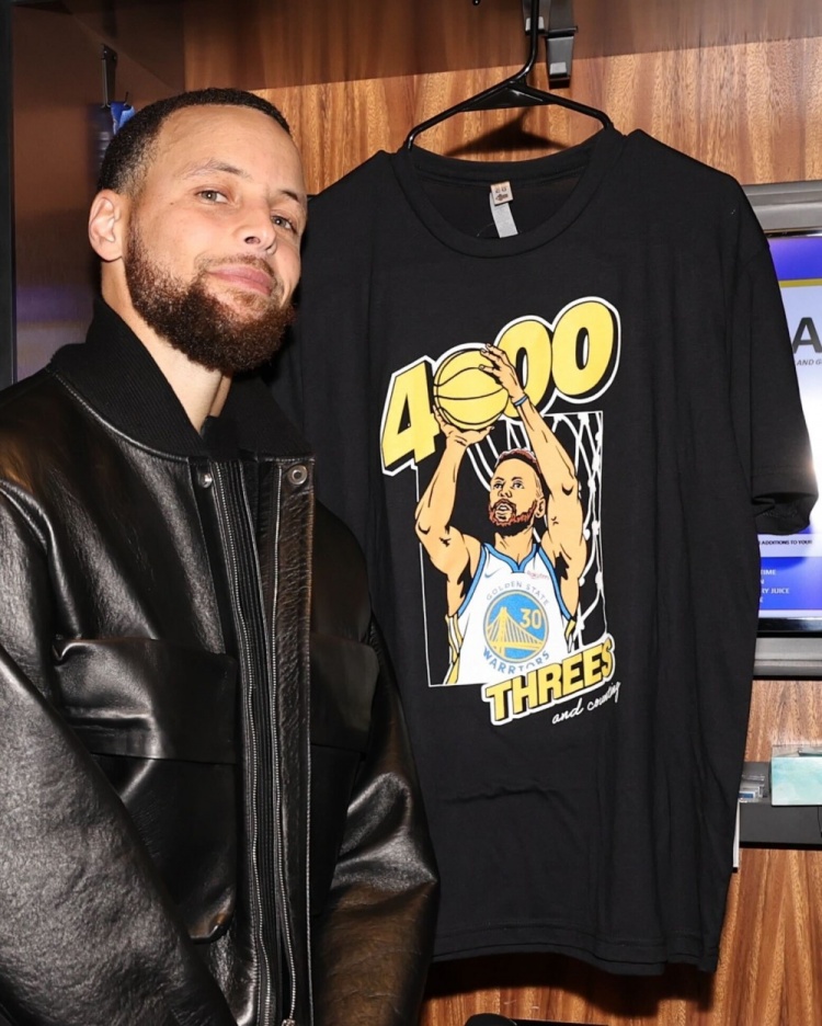 帥滴!官方曬出庫(kù)里賽后穿皮衣與4000三分T恤合照:Mr.4K