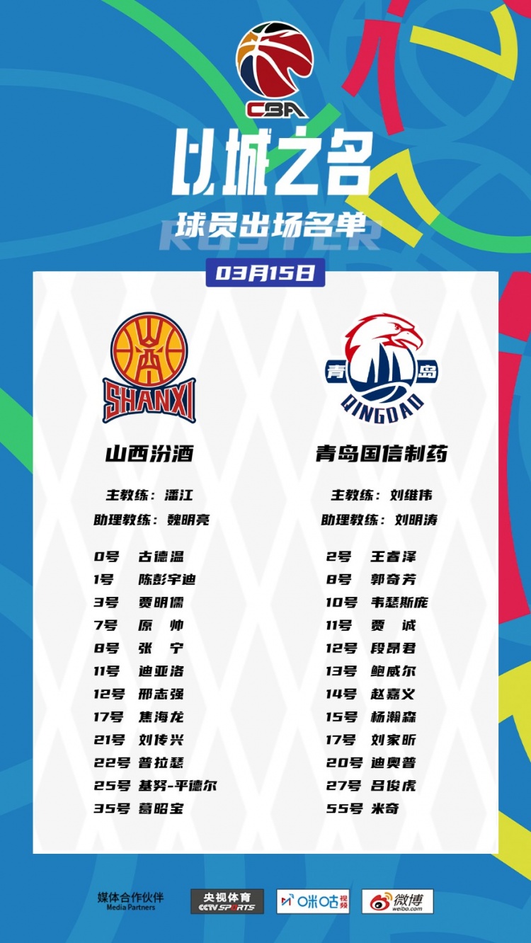 山西隊(duì):古德溫、陳彭宇迪、賈明儒、原帥、張寧、迪亞洛、邢志強(qiáng)、焦海龍、劉傳興、普拉瑟、基努-平德?tīng)?、葛昭寶?/p>
