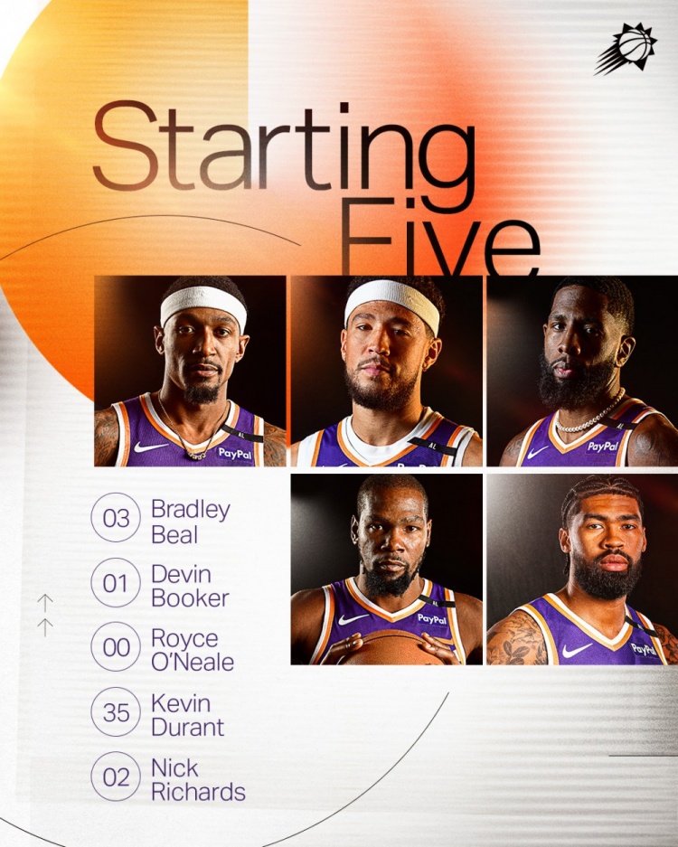 2025-02-24 16:16:22今日對陣猛龍!太陽首發(fā):比爾、KD、布克、R-奧尼爾、理查茲