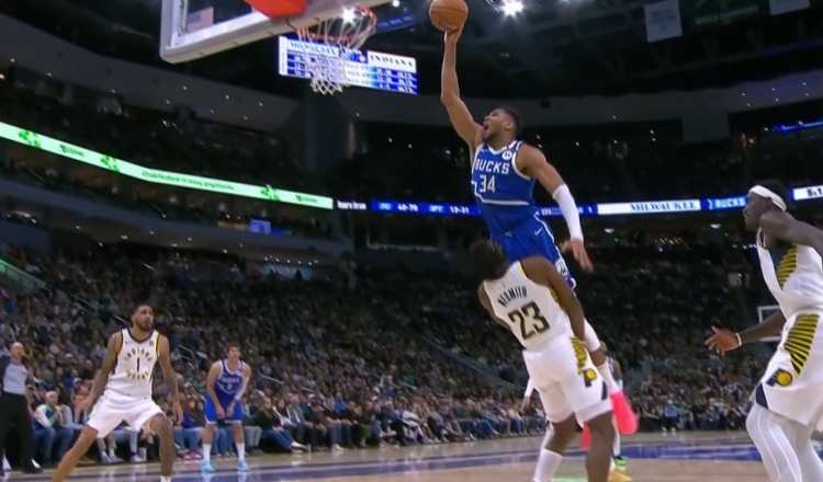 2025-03-16 10:23:26視覺(jué)效果炸裂!字母哥絲滑轉(zhuǎn)身單臂隔扣內(nèi)史密斯 可惜吹進(jìn)攻犯規(guī)
