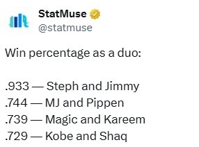 2025-03-16 23:03:21庫(kù)里+巴特勒勝率93.3%!美媒對(duì)比:?jiǎn)痰てづ?4.4% 科比鯊魚72.9%