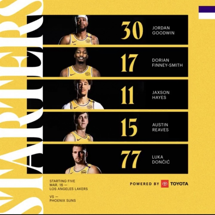 2025-03-17 11:03:39湖人首發(fā):東契奇 里夫斯 古德溫 芬尼-史密斯 海斯