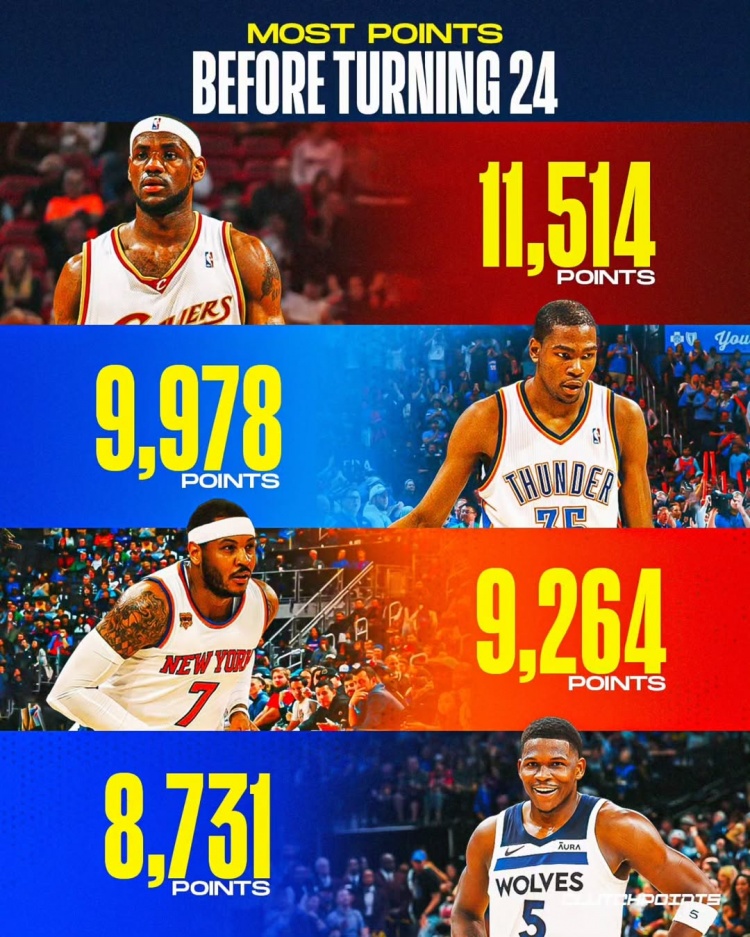 2025-03-18 18:26:27球星24歲前得分榜:華子8731登第4 詹姆斯斷檔第1 KD甜瓜分列2、3