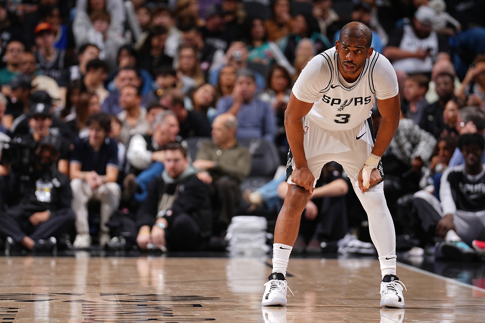 在快船主場(chǎng)Intuit Dome球館的比賽開(kāi)始前,馬刺老將控衛(wèi)克里斯-保羅被要求代表球員發(fā)言,他在更衣室附近發(fā)表了講話。