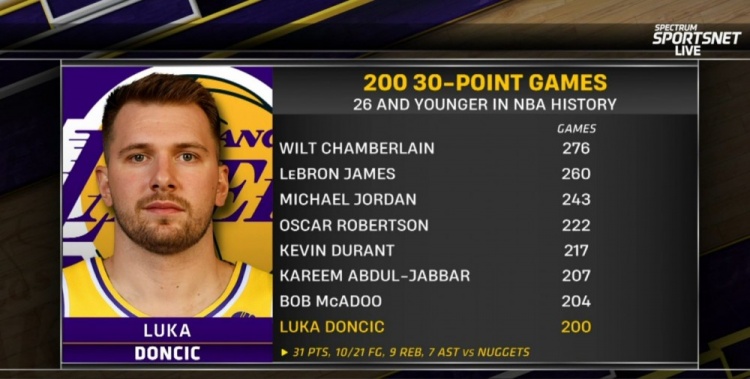 東契奇27歲前200場30+ 歷史第8多 詹姆斯第2 喬丹第3 KD第5