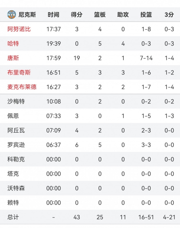 2025-03-20 22:03:23瞎打!唐斯半場19分 其余尼克斯首發(fā)24中3共得11分