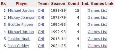 2025-03-23 22:25:17基迪單賽季打出4次三雙 隊(duì)史第2多 88-89賽季喬丹曾15次三雙