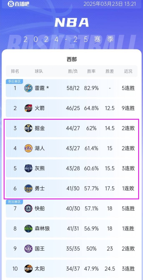 2025-03-23 22:55:19??火箭9連勝穩(wěn)居西區(qū)第2 掘湖熊勇都輸球 快船森林狼追擊直通區(qū)