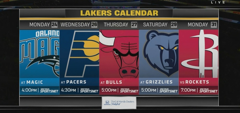 準備開啟東征!湖人未來5場對手:魔術/步行者/公牛/灰熊/火箭