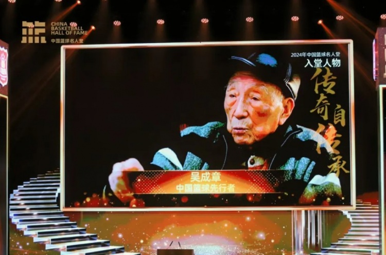 現(xiàn)年101歲的吳成章老人是李震中先生1948年奧運會的隊友,雖然無法親臨現(xiàn)場,他仍通過視頻表達了自己進入名人堂的喜悅。吳老之子吳忻水代父親領取名人堂徽章,并分享了他們之間的“父子籃球”軼事。