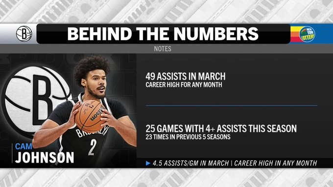 2025-03-29 07:57:04卡梅隆-約翰遜3月49助攻創(chuàng)個(gè)人新高 本季25次助攻4+多于此前5賽季