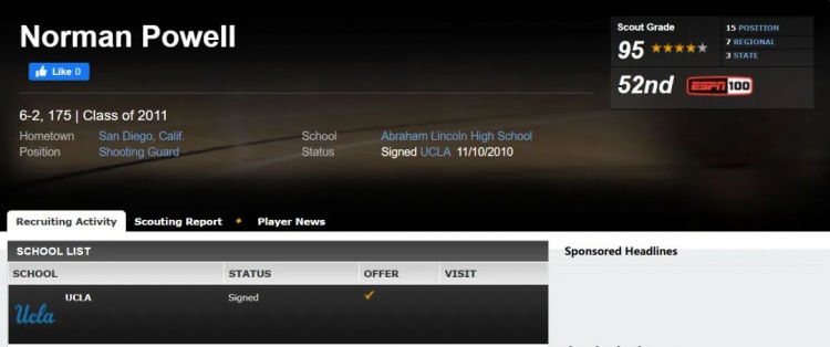 整個高三賽季,鮑威爾場均19.7分4.9個籃板2.7次搶斷1次封蓋1.7次助攻,以頭號得分手的身份帶領(lǐng)林肯高中一路高歌猛進(jìn),斬獲無數(shù)殊榮,等到高四賽季打完,他再次交出了場均20.4分3.8個籃板球2.4次搶斷1.1次封蓋1.4次助攻的出色答卷,被ESPN評為四星高中生,在全美百大新人里排在第52位,有多所籃球名校都向他拋出了橄欖枝。