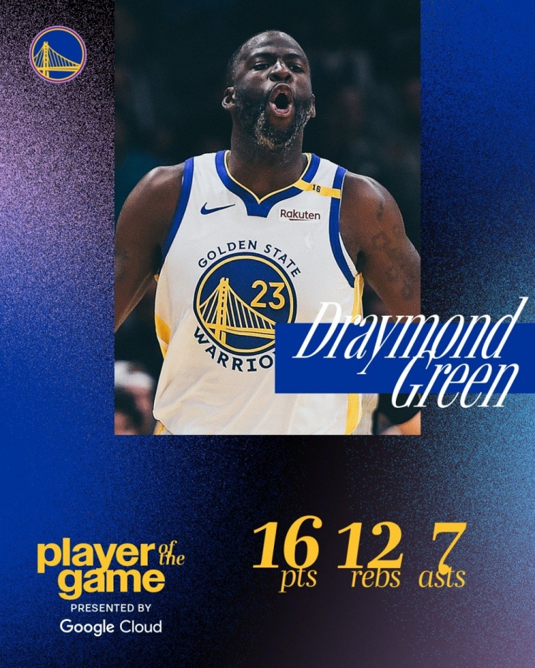 賽后,勇士官推將追夢評(píng)選為本場最佳球員。