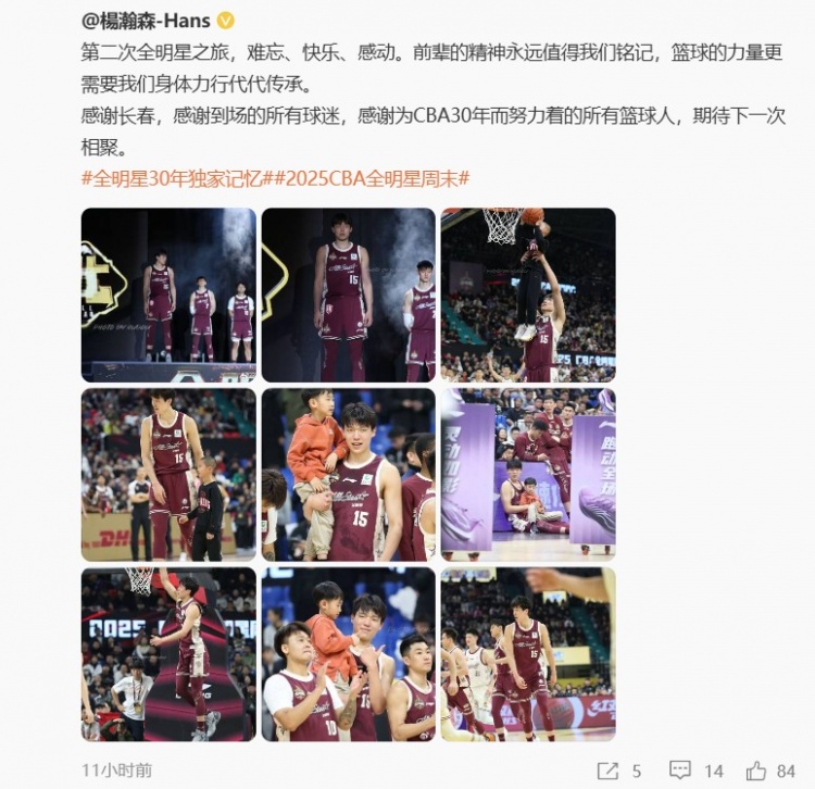 2025-03-04 11:18:16楊瀚森:第二次全明星之旅 感謝長春&到場球迷 期待下一次相聚