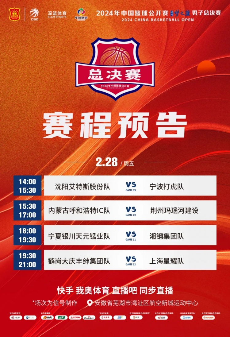 2月27日,2024年中國籃球公開賽洋河夢之藍(lán)男子總決賽進(jìn)入到第二個比賽日。在本輪比賽中,湘鋼集團(tuán)、寧波打虎、艾特斯股份、寧夏天元錳業(yè)獲勝。