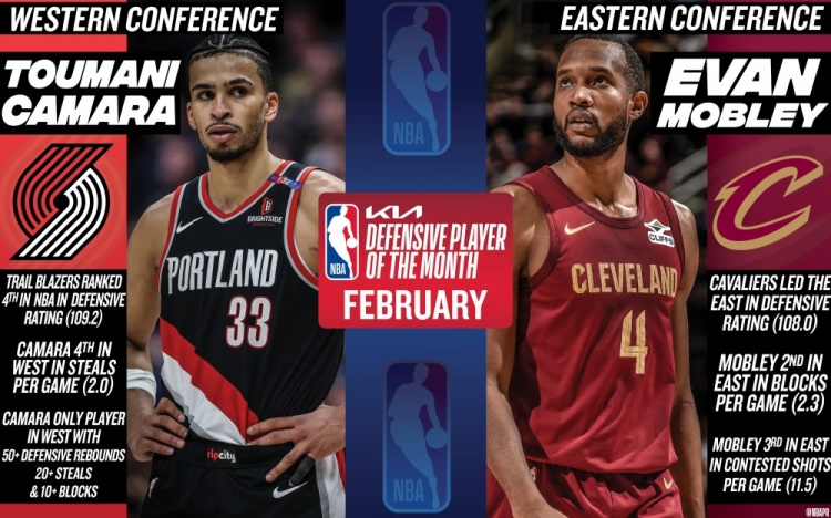 3月5日訊 今日NBA官方今日宣布,開拓者隊(duì)前鋒圖馬尼-卡馬拉和騎士中鋒小莫布里當(dāng)選2月份西部和東部最佳防守球員。