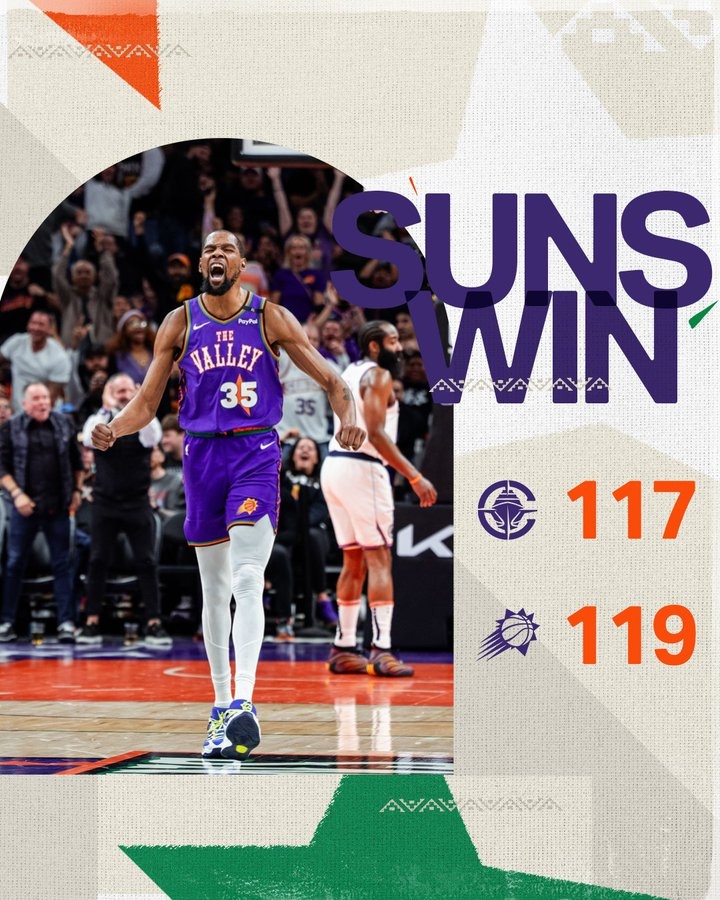 當(dāng)記首功!太陽官方曬贏球海報 杜蘭特振臂怒吼 哈登成為背景