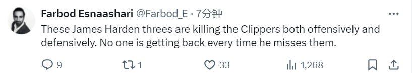 2025-03-05 23:59:28船記:哈登的三分在傷害快船 投不進(jìn)時沒人能退回來