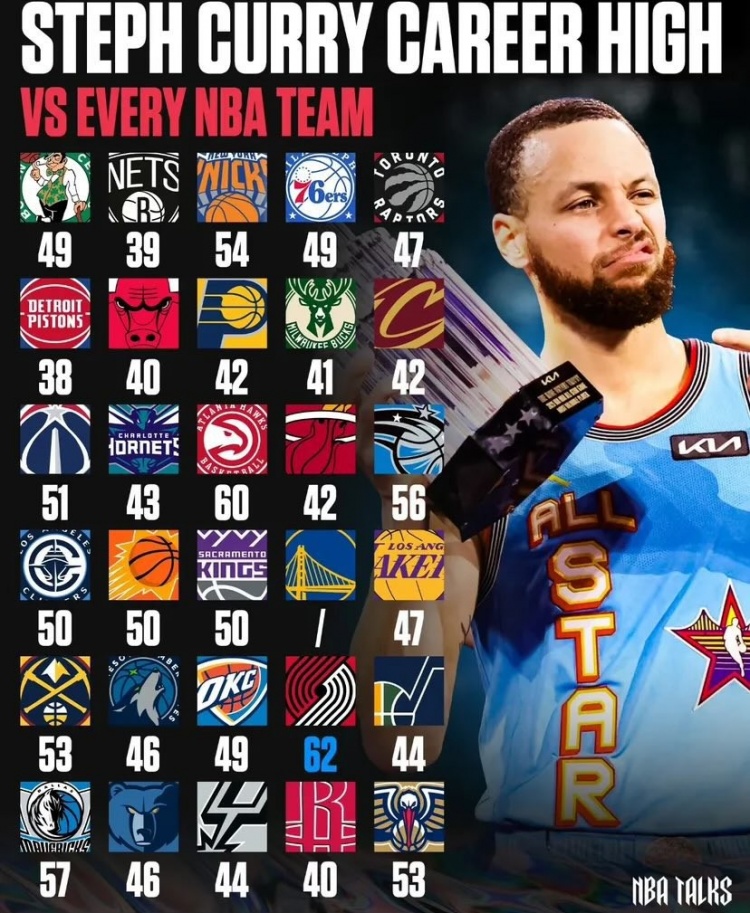 下一場(chǎng)達(dá)成?!庫(kù)里生涯已對(duì)聯(lián)盟28隊(duì)均砍下40+ 僅打活塞沒(méi)有
