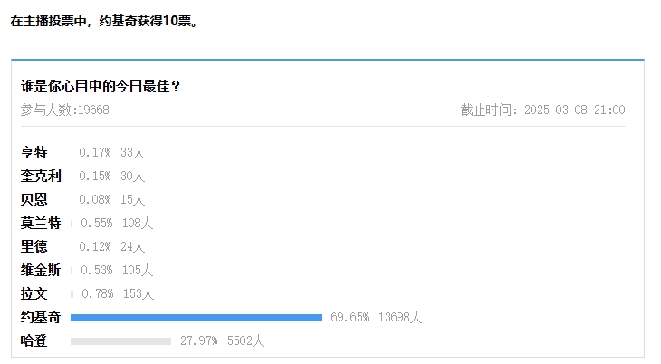 2025-03-08 21:36:00【直播吧評選】3月8日NBA最佳球員:約基奇