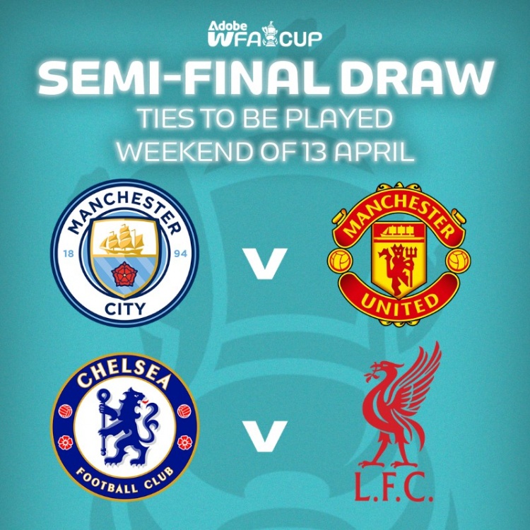 2025-03-10 21:14:40女足足總杯半決賽對陣:曼城vs曼聯(lián),切爾西vs利物浦