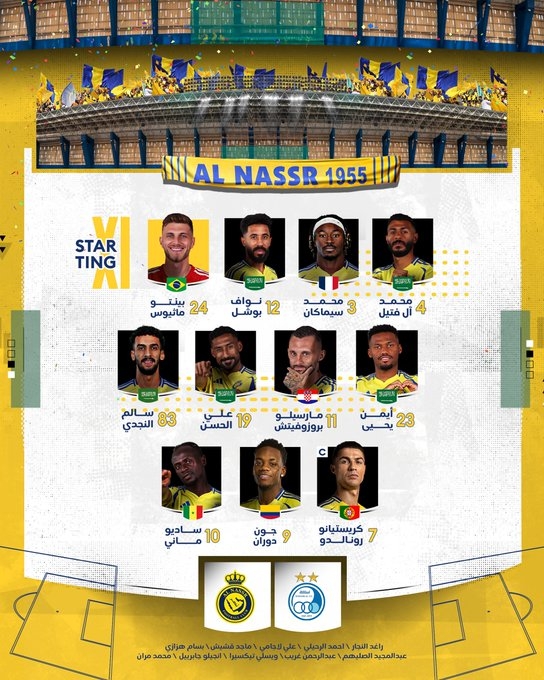 利雅得勝利vs德黑蘭獨立首發(fā):C羅領(lǐng)銜,杜蘭、馬內(nèi)先發(fā)