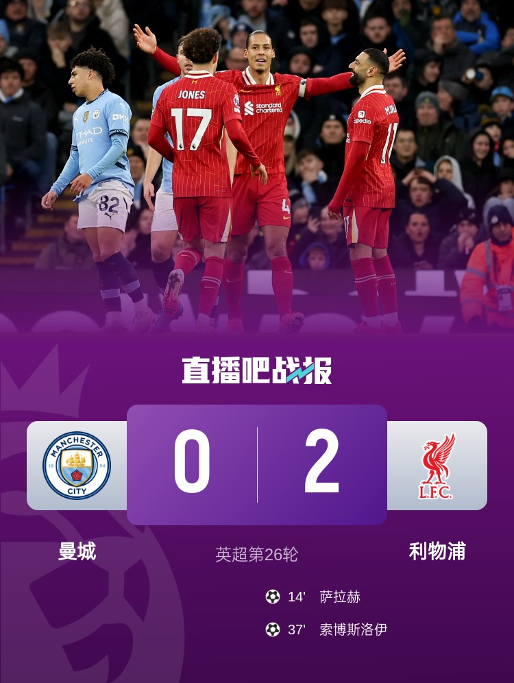 2025-02-24 16:11:14瓜式曼城第二次主場不敵利物浦,上次是在2017/18賽季歐冠淘汰賽