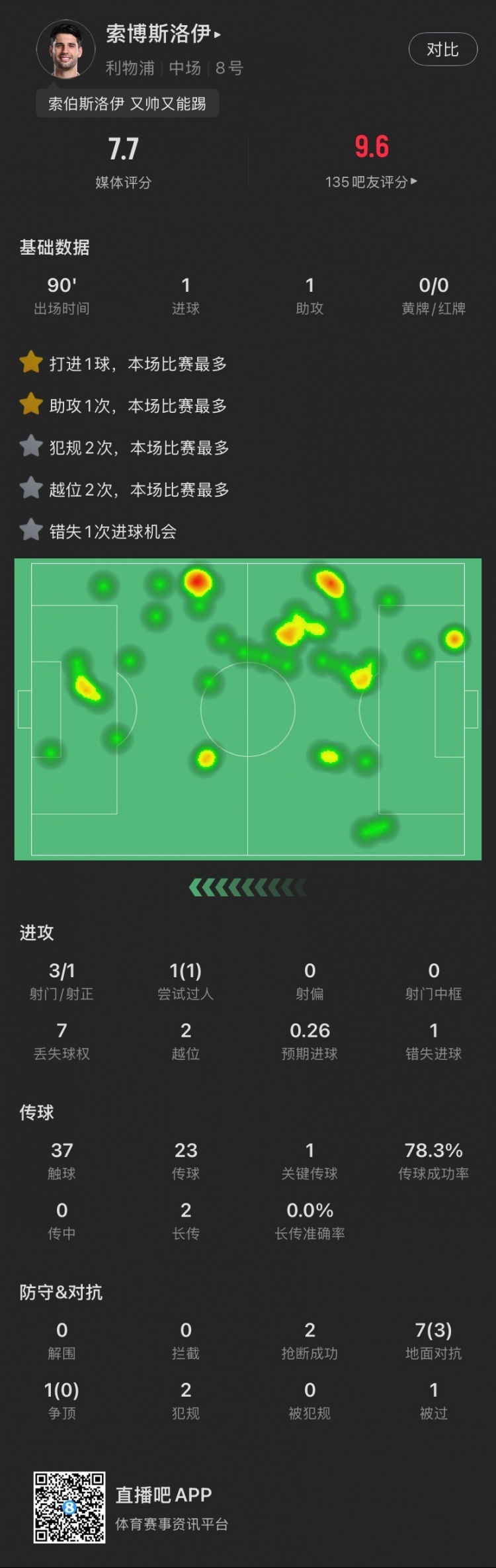 2025-02-24 16:11:21索博本場:傳射建功,越位2次全場最多,2搶斷,8次對抗成功3次