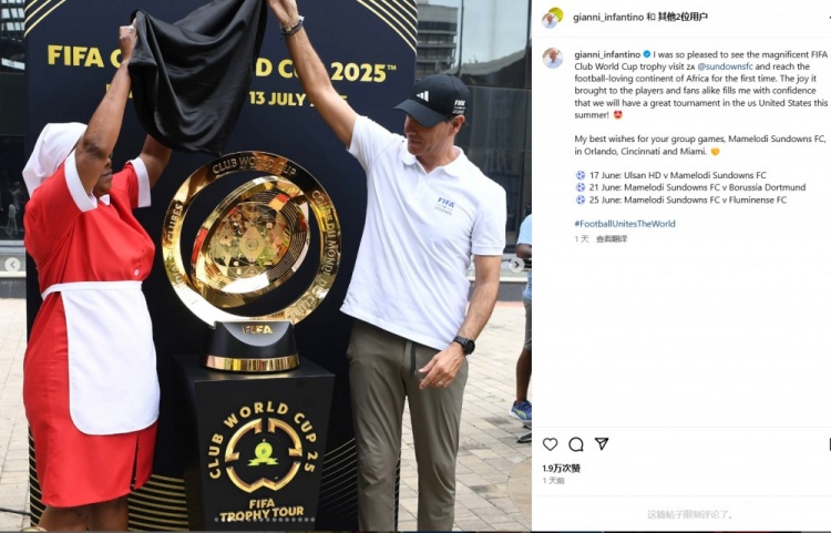2025-03-11 23:55:32因凡蒂諾:很高興看到世俱杯獎(jiǎng)杯首次抵達(dá)熱愛足球的非洲大陸