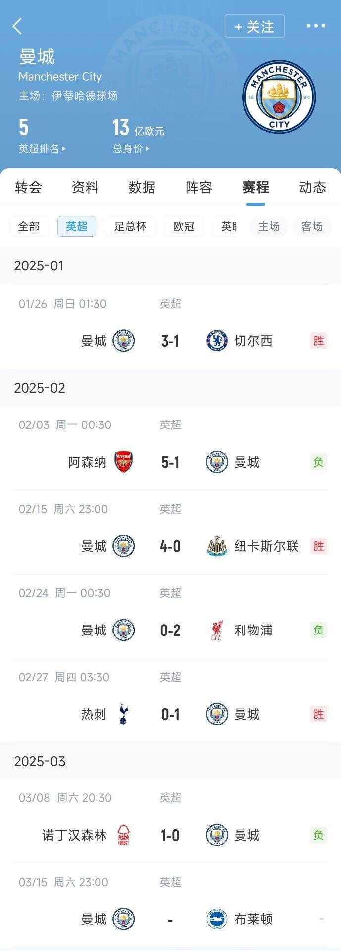 2025-03-12 00:02:03曼城近6輪打完英超第1/2/3/4/6收獲2勝3負(fù),魔鬼賽程終點站打第7
