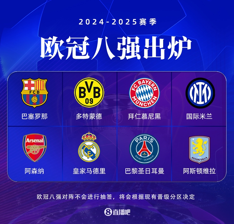2025-03-13 06:58:29歐冠8強聯(lián)賽分布:英超西甲德甲各2隊,意甲、法甲均1隊