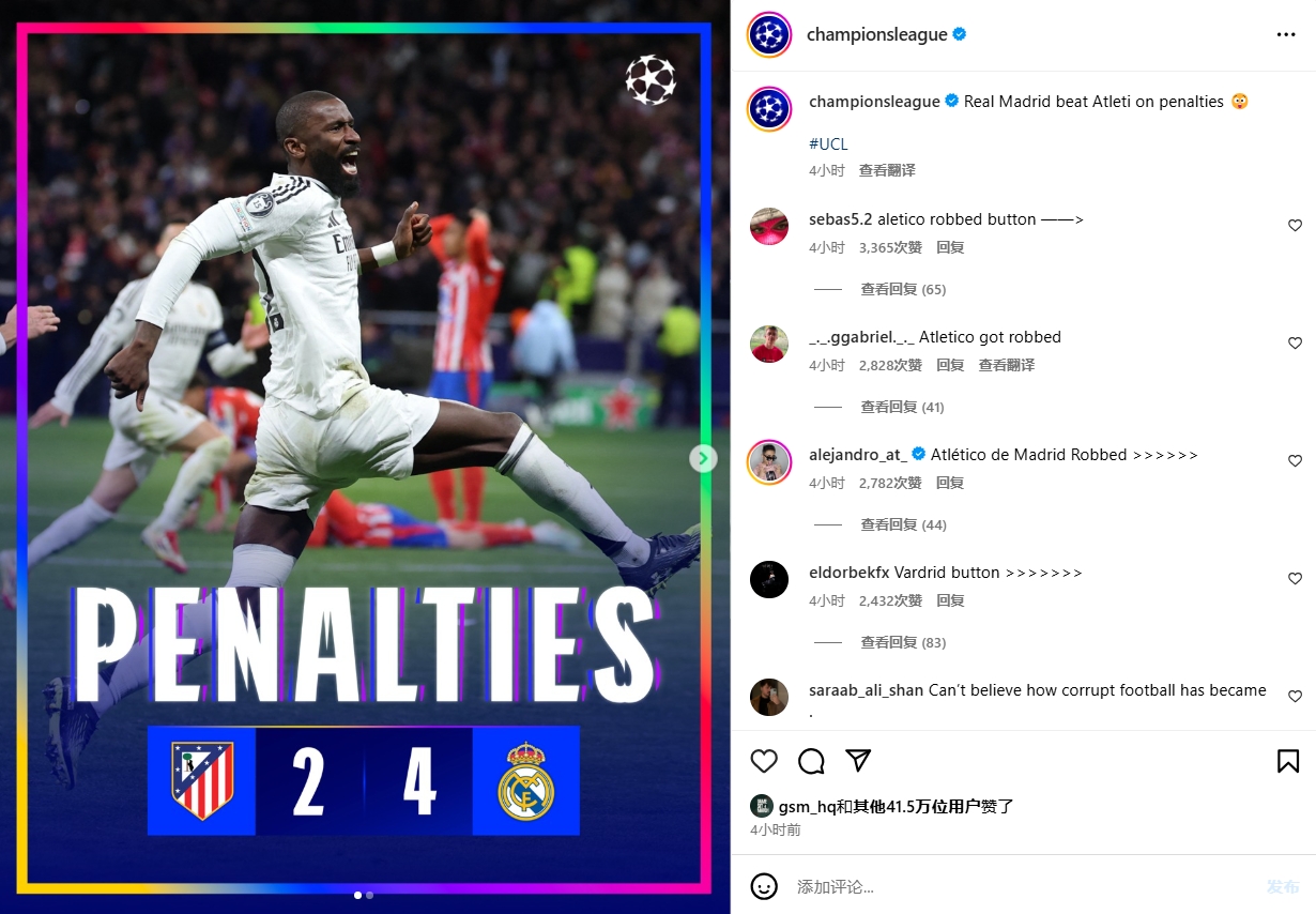 2025-03-13 14:32:36歐冠官方ins評(píng)論區(qū)被刷屏:馬競(jìng)被搶劫了 足球竟腐敗到這個(gè)地步