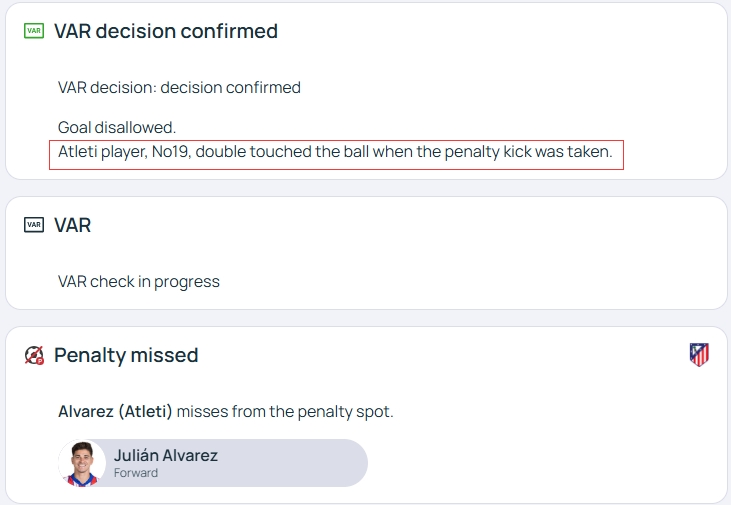 官方明確!歐冠官網(wǎng):阿爾瓦雷斯罰點(diǎn)時(shí)2次觸球,VAR決定進(jìn)球無效