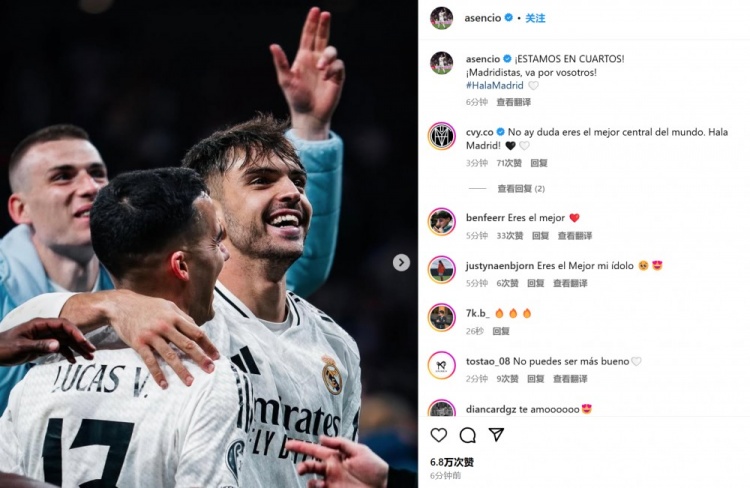 2025-03-13 14:38:48勞爾-阿森西奧社媒慶祝晉級(jí)八強(qiáng):皇馬球迷們,這是獻(xiàn)給你們的