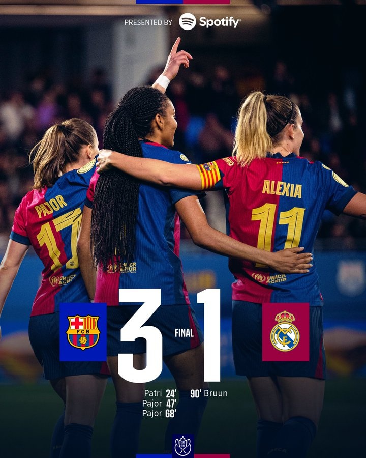 今天凌晨,巴薩女足在皇后杯半決賽次回合主場3-1擊敗皇馬女足,總比分8-1淘汰對手,進入決賽。