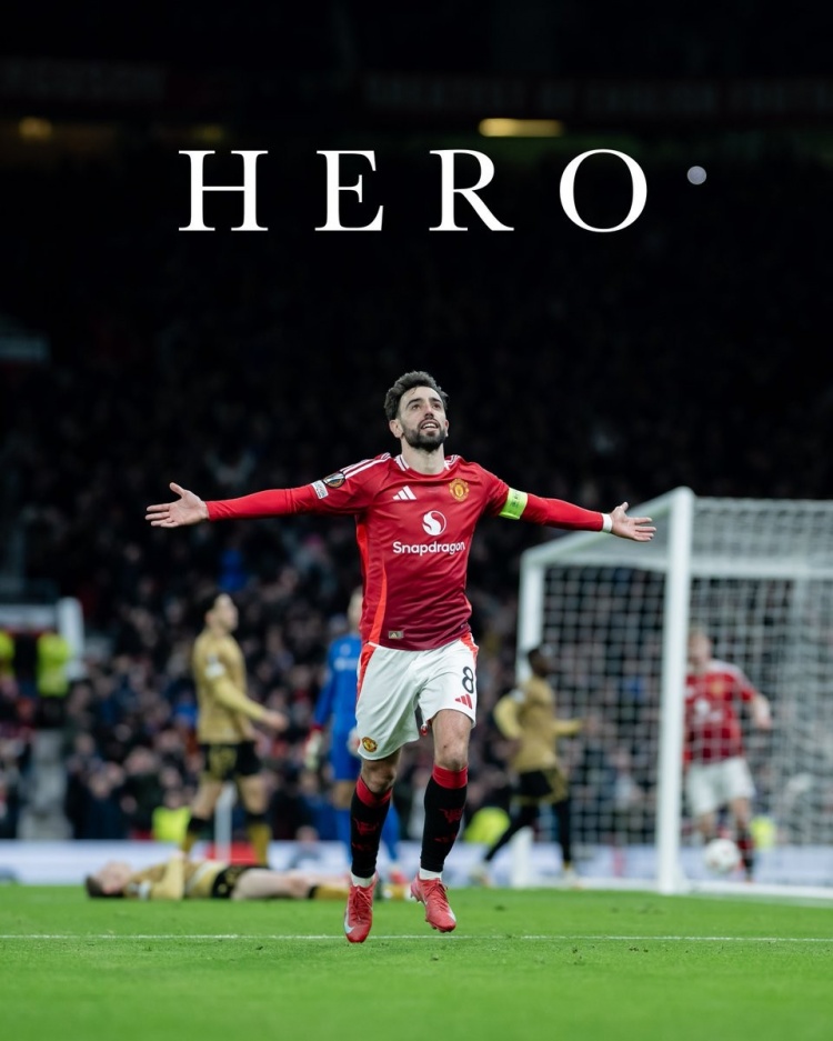 2025-03-14 11:46:29帽子戲法!曼聯(lián)官推曬B費(fèi)海報(bào)“英雄”,并配文:無需多言
