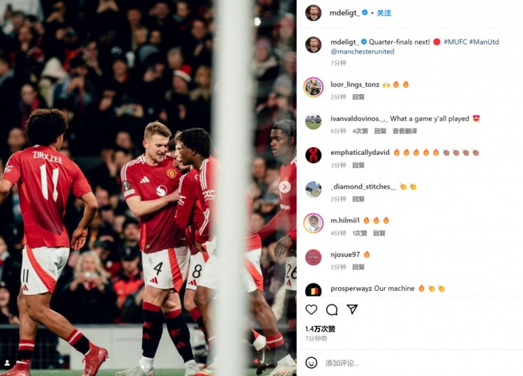 2025-03-14 11:46:39開場送點!德里赫特社媒和隊友相擁慶祝照:晉級八強戰(zhàn)!