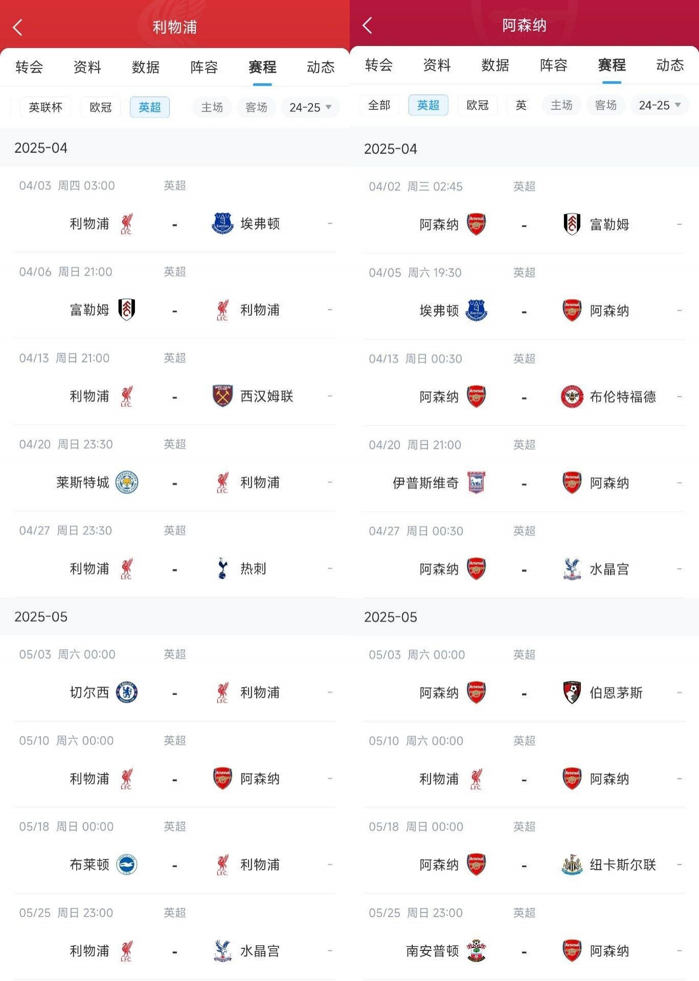 2025-03-17 16:24:53剩9輪差12分!利物浦阿森納賽程對比:第36輪交鋒,紅軍賽程略難