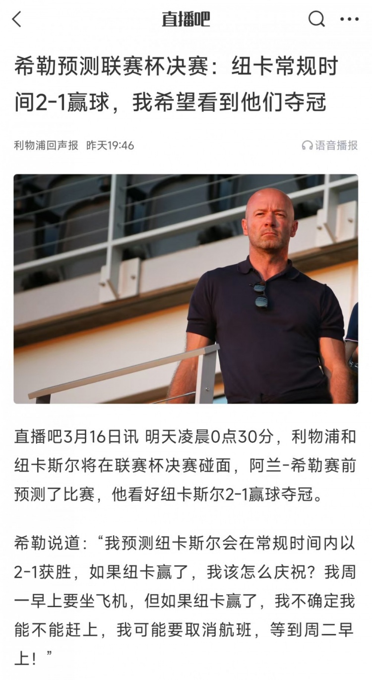 2025-03-17 16:26:31小嘴開了光!希勒賽前精準(zhǔn)預(yù)測:紐卡常規(guī)時間2-1贏利物浦