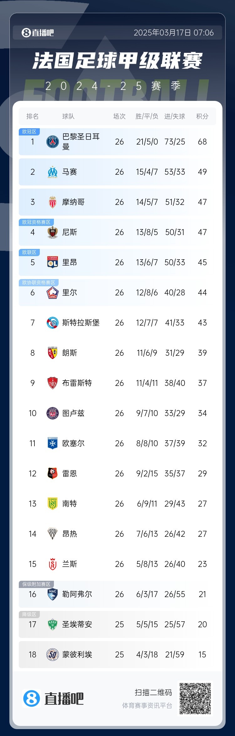 2025-03-17 16:31:24法甲榜首對(duì)決獲勝&領(lǐng)先19分,巴黎最快下一輪就能提前奪冠