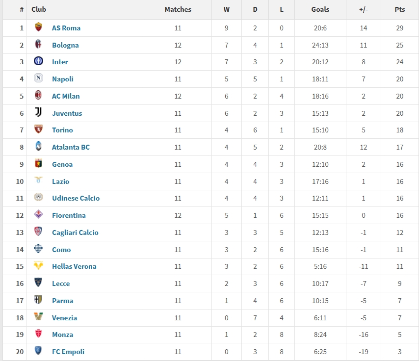2025-03-18 08:21:48意甲2025年度積分榜:羅馬29分居首,國米第三,米蘭尤文位列五六