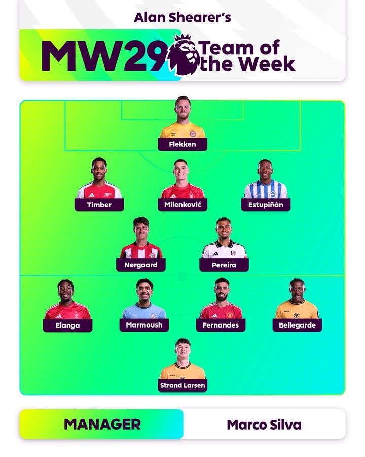 2025-03-18 08:26:40希勒評(píng)本輪英超最佳陣容:B費(fèi)領(lǐng)銜,廷伯、馬爾穆什、佩雷拉入選