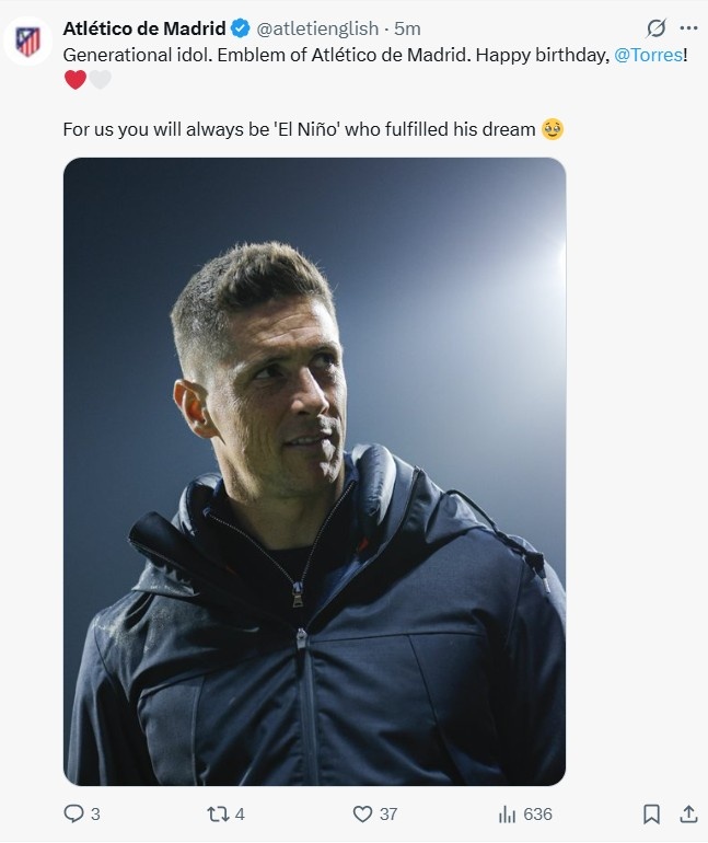 2025-03-20 23:23:20馬競官方祝托雷斯41歲生日快樂:一代偶像,你永遠(yuǎn)是我們的圣嬰
