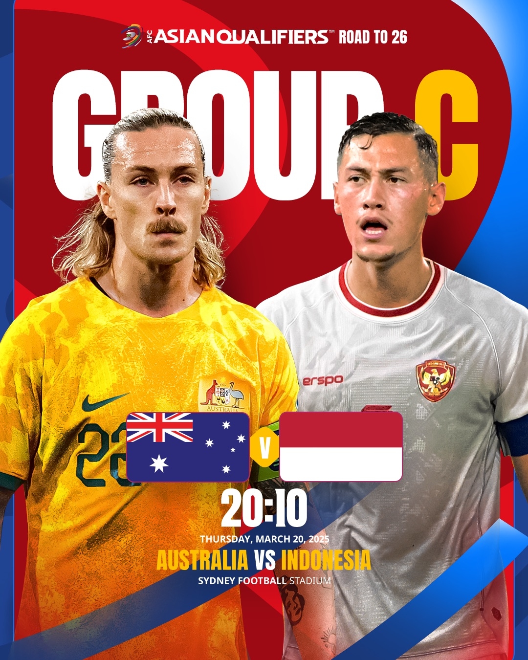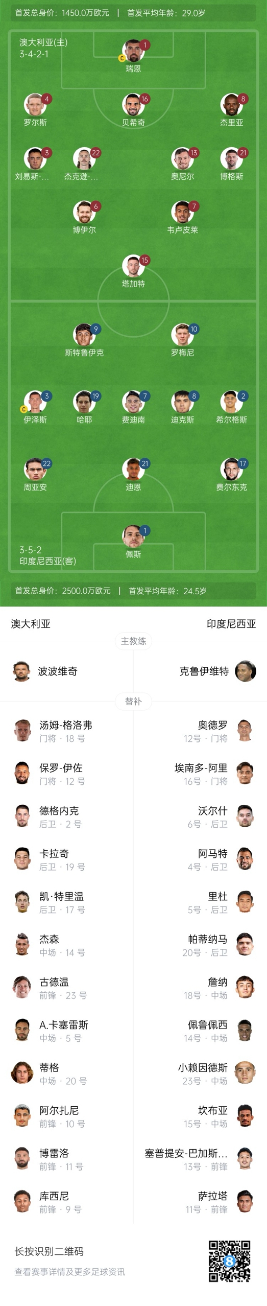 2025-03-20 23:25:03國(guó)足同組!澳大利亞vs印尼首發(fā):印尼先發(fā)10名歸化 古德溫蒂格替補(bǔ)