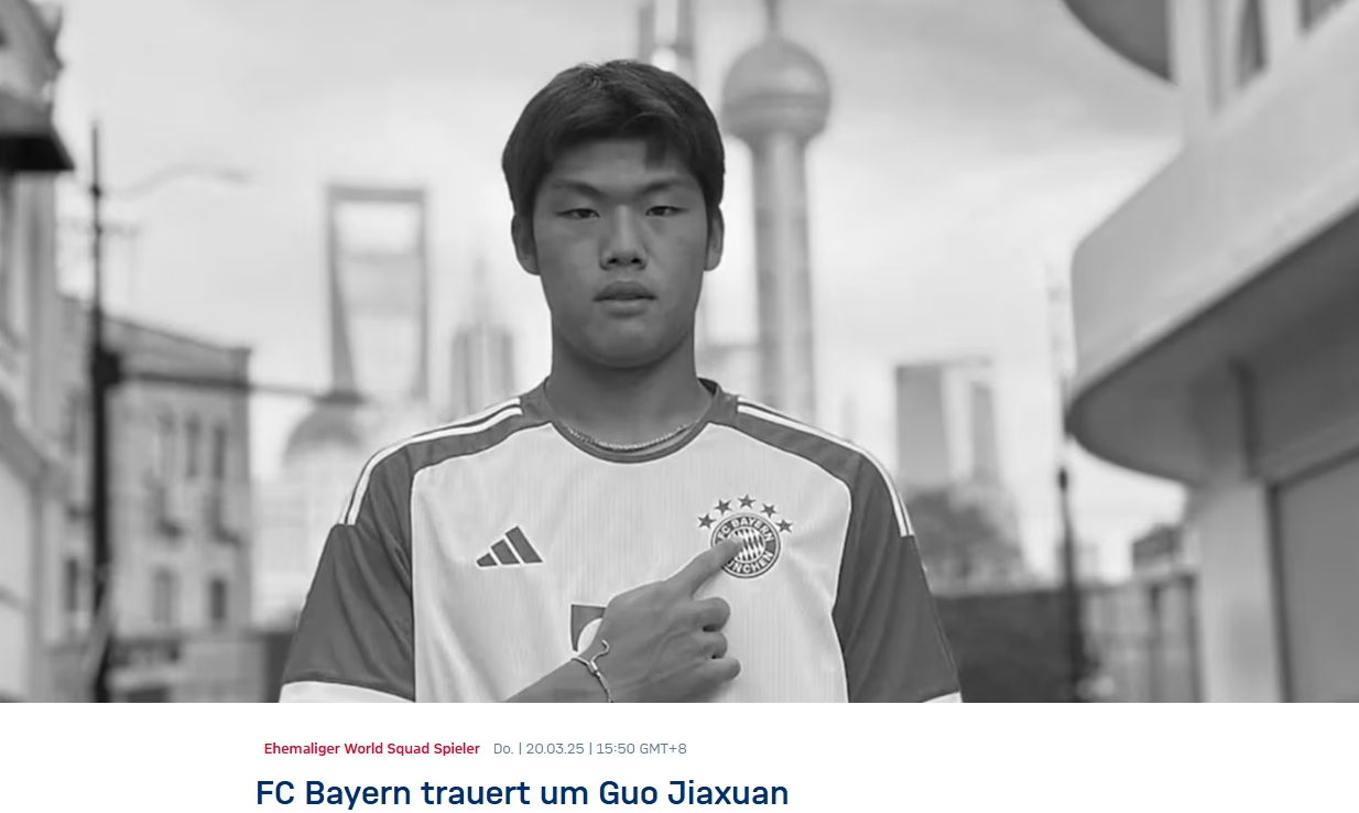 2025-03-20 23:25:19拜仁悼念郭嘉璇:深表哀悼,俱樂部的思念與他的家人和朋友同在