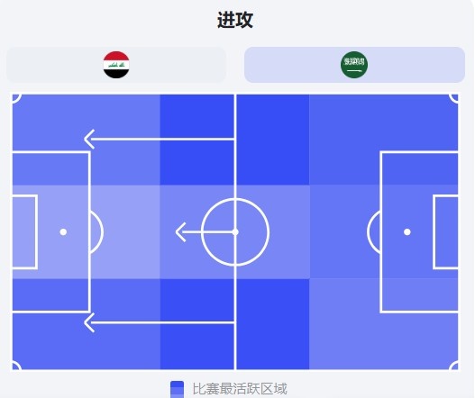 3-1勝伊拉克是他們近日打出的最佳表現(xiàn)了,看看他們的進(jìn)攻區(qū)域就知道其對邊路的重視