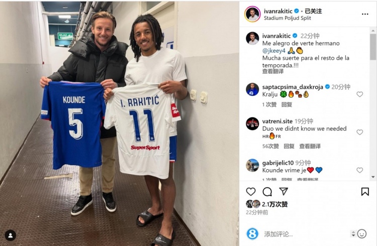 2025-03-21 09:23:49拉基蒂奇社媒曬與孔德合照:很高興見(jiàn)到你,祝剩余賽季好運(yùn)